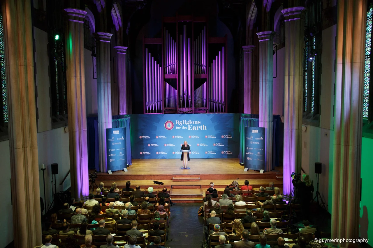 Along with the conference, a multi-faith service held on September 21 brought together thousands of people at the Cathedral of St. John the Divine. Speeches and reflections by Chief Arvol Looking Horse, Al Gore, Rev. James Forbes, and Vandana Shiva, among others, called the congregation to commit to climate action.